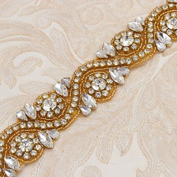 Luxo ouro brilhante vidro Rhinestone Applique Patch para vestuário LT2388